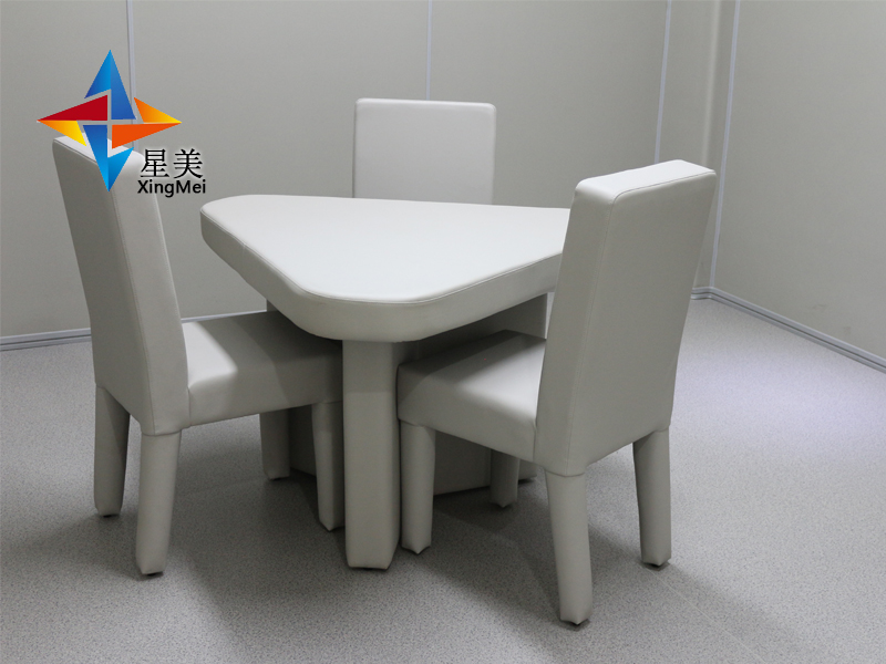 2、談話桌椅應(yīng)采用木質(zhì)材料制作,而且不得有明顯的銳角,被談話人的椅要固定。